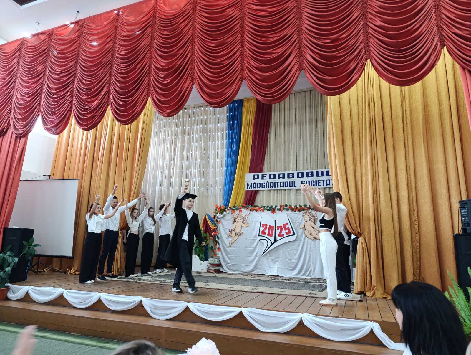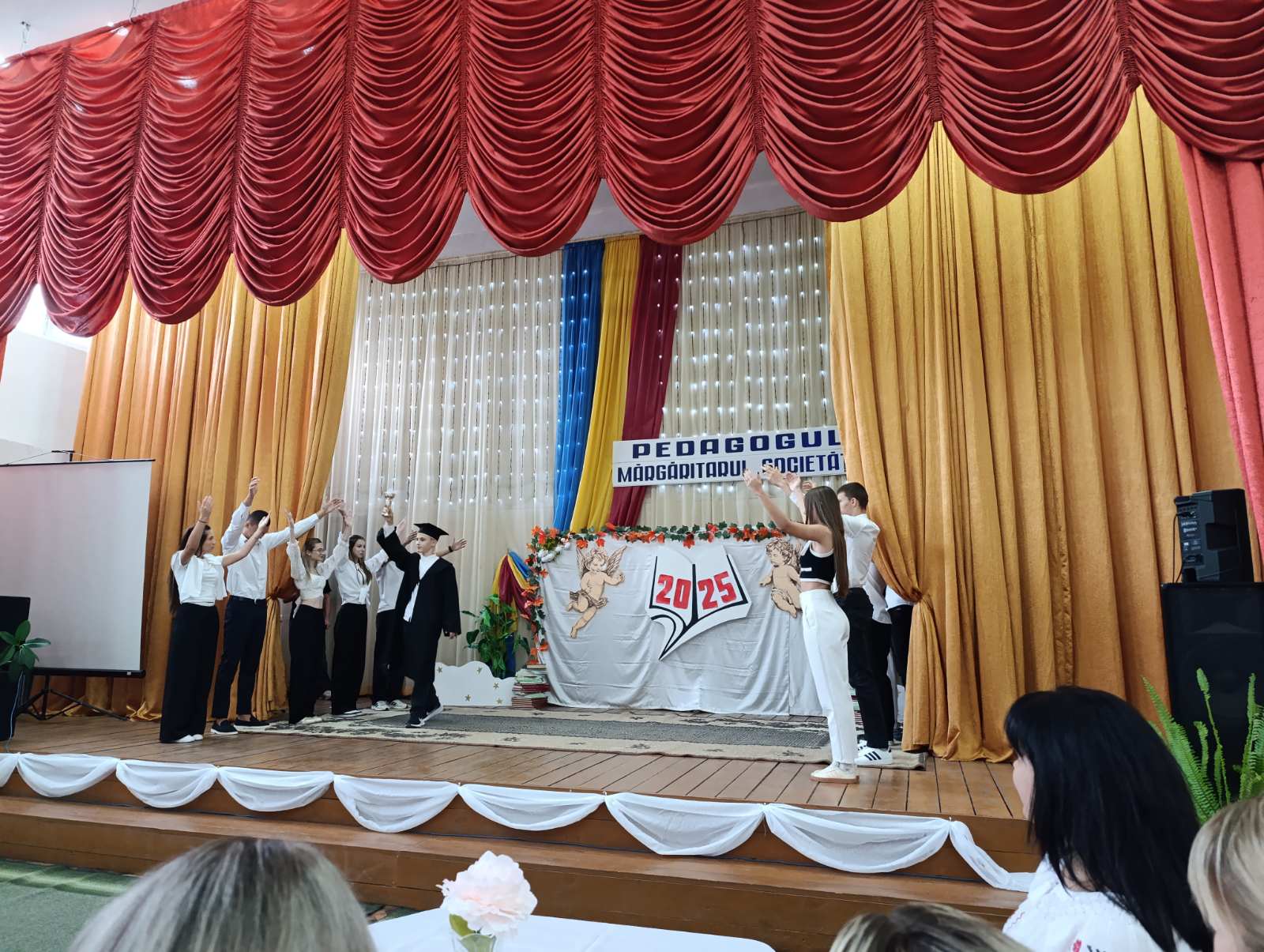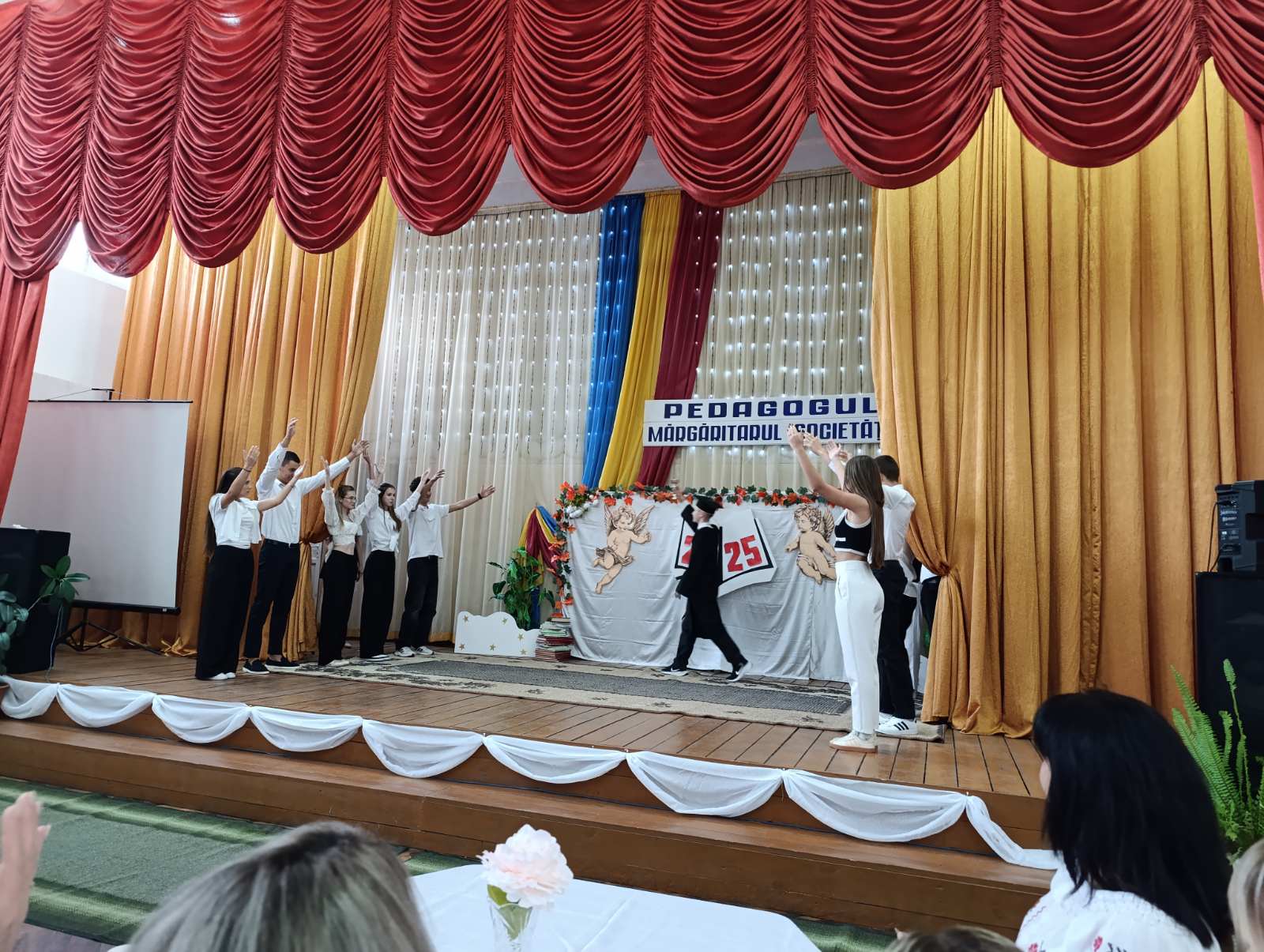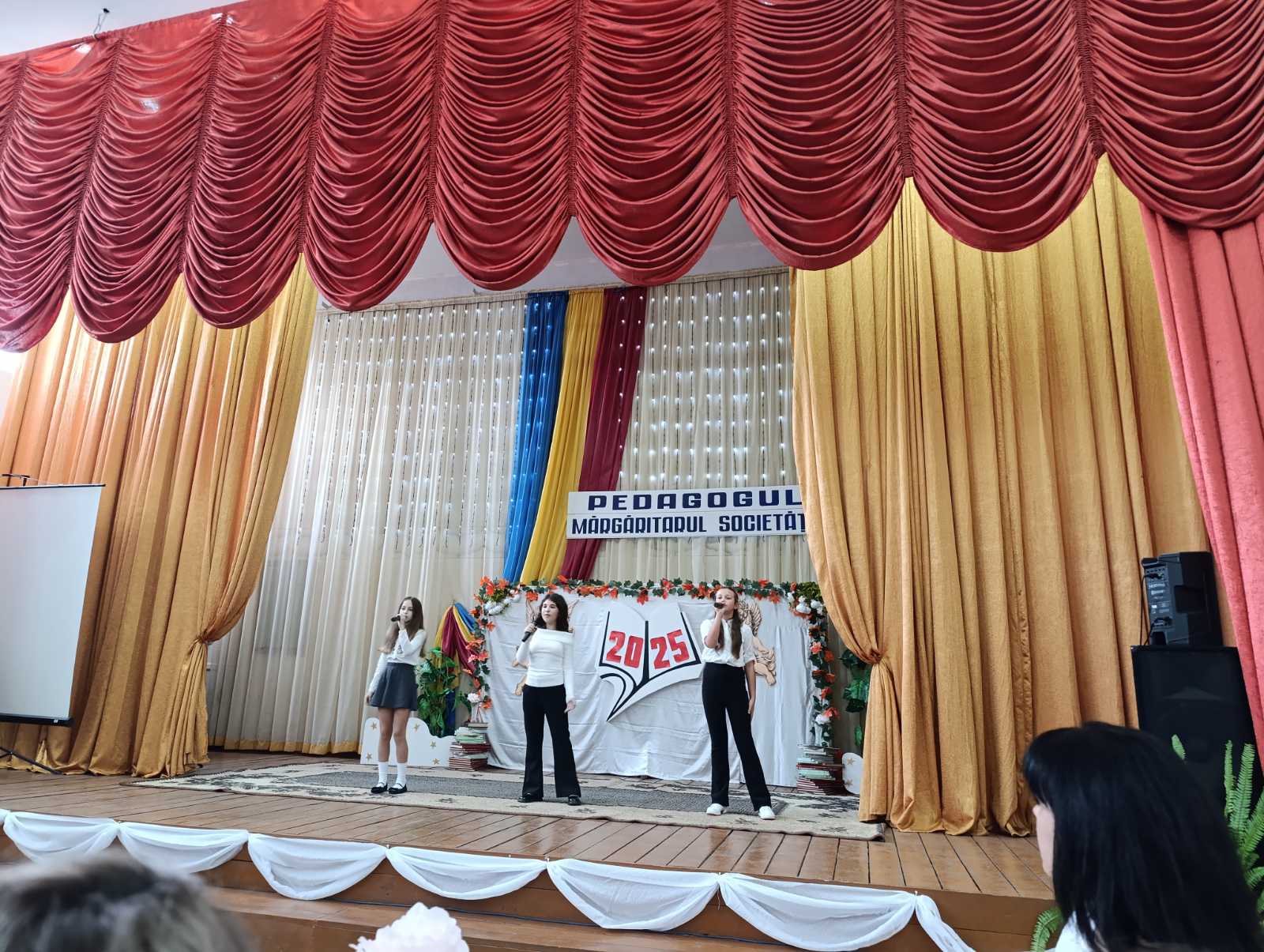 Atmosfera a fost una caldă și emoționantă: chipurile dascălilor s-au luminat de zâmbete, iar aplauzele au răsunat îndelung după fiecare reprezentație. Un moment special al sărbătorii l-a constituit mesajul adresat de directorul liceului, domnul Hanganu Gheorghe, care a venit cu urări de sănătate, inspirație și succes întregului colectiv profesoral, subliniind importanța muncii lor în formarea și educarea tinerei generații.